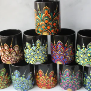 Semi mandala dot painted coffee mug (pack of 1, random)