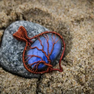 Blue Labradorite oval-drop tree of life pendant