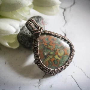 Fruit Jasper drop wire wrapped frame
