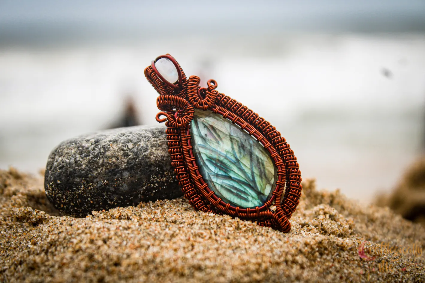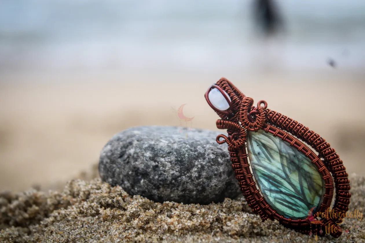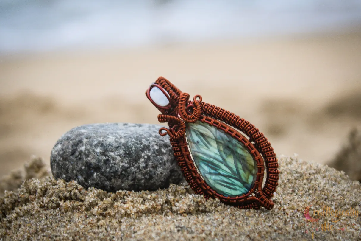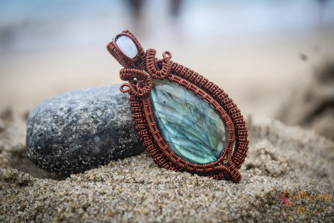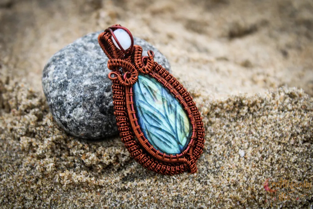 Blue Carved Labradorite Coiled Coil wrap