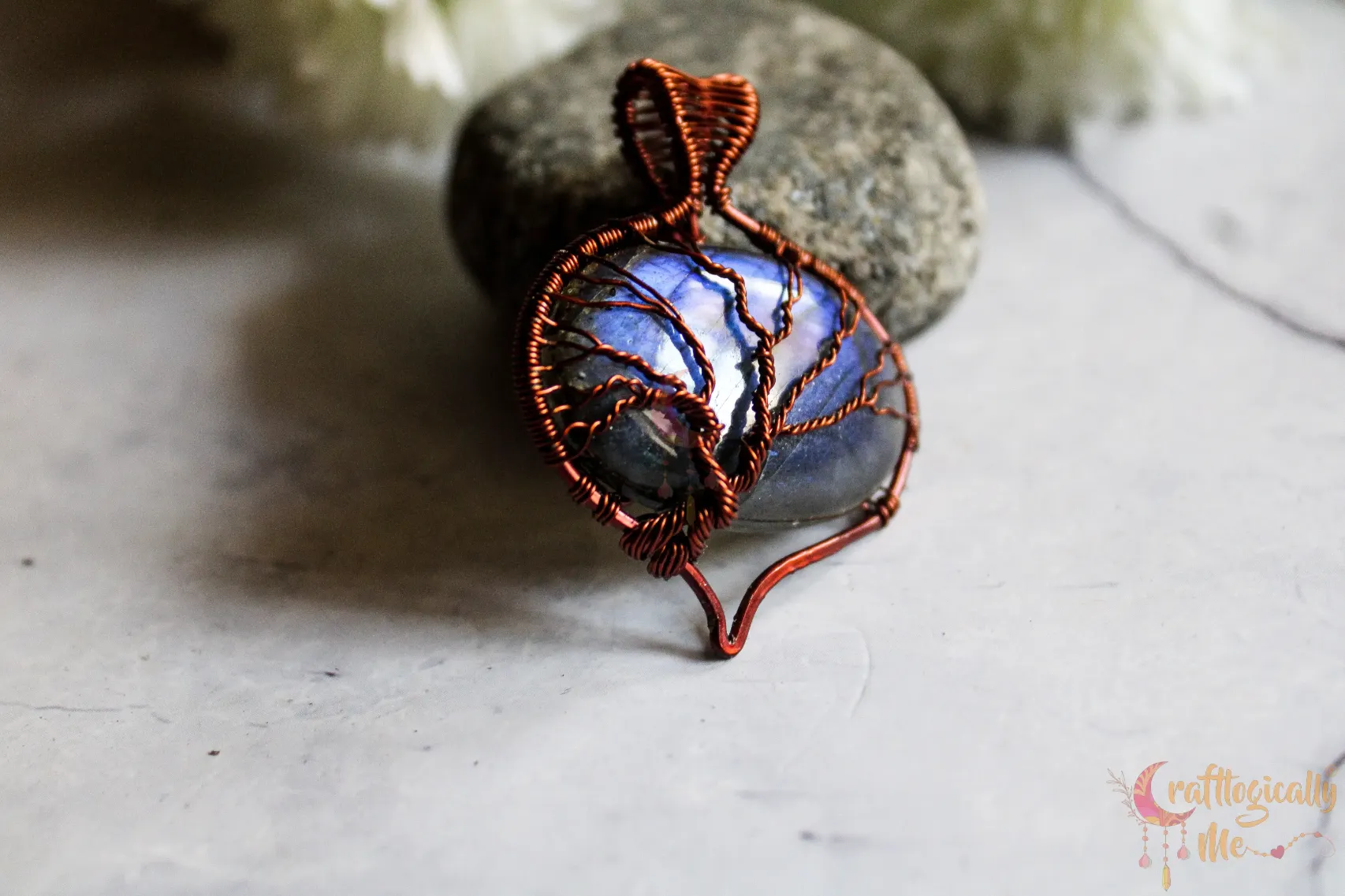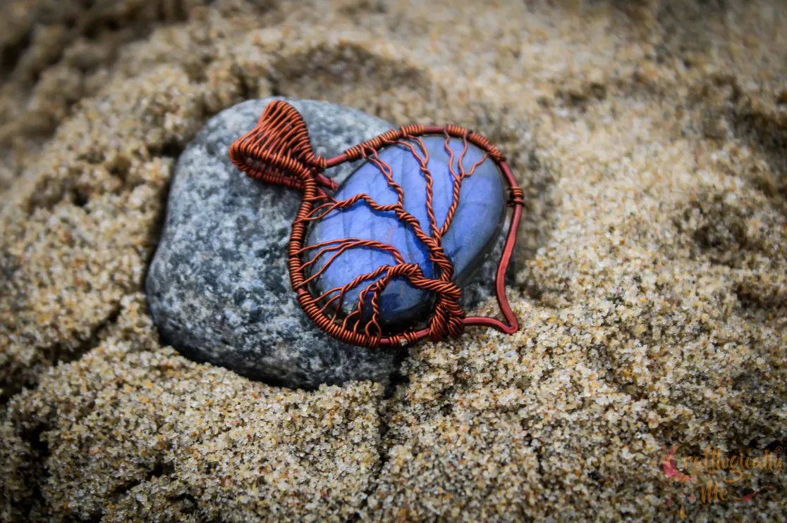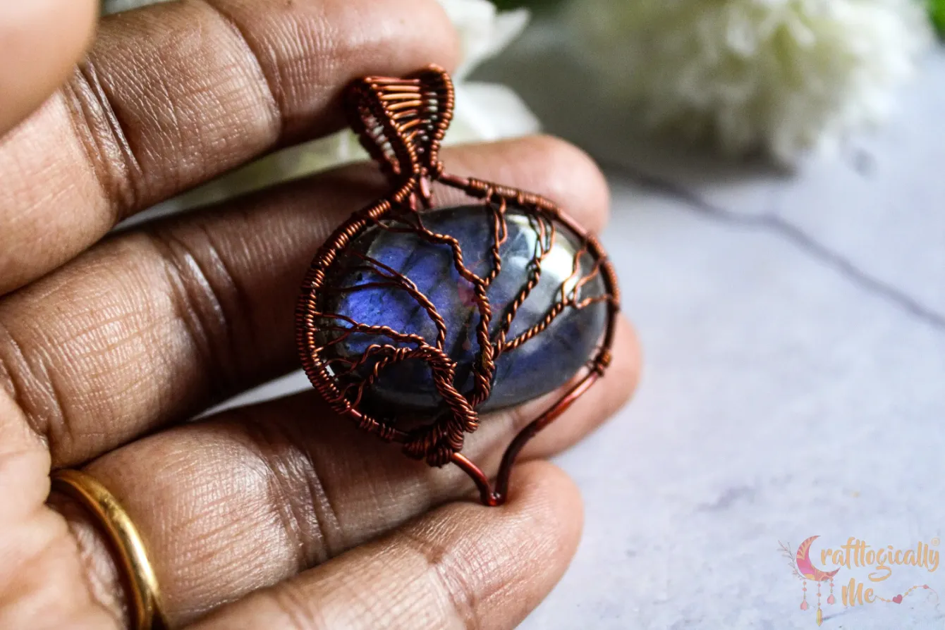 Blue Labradorite oval-drop tree of life pendant