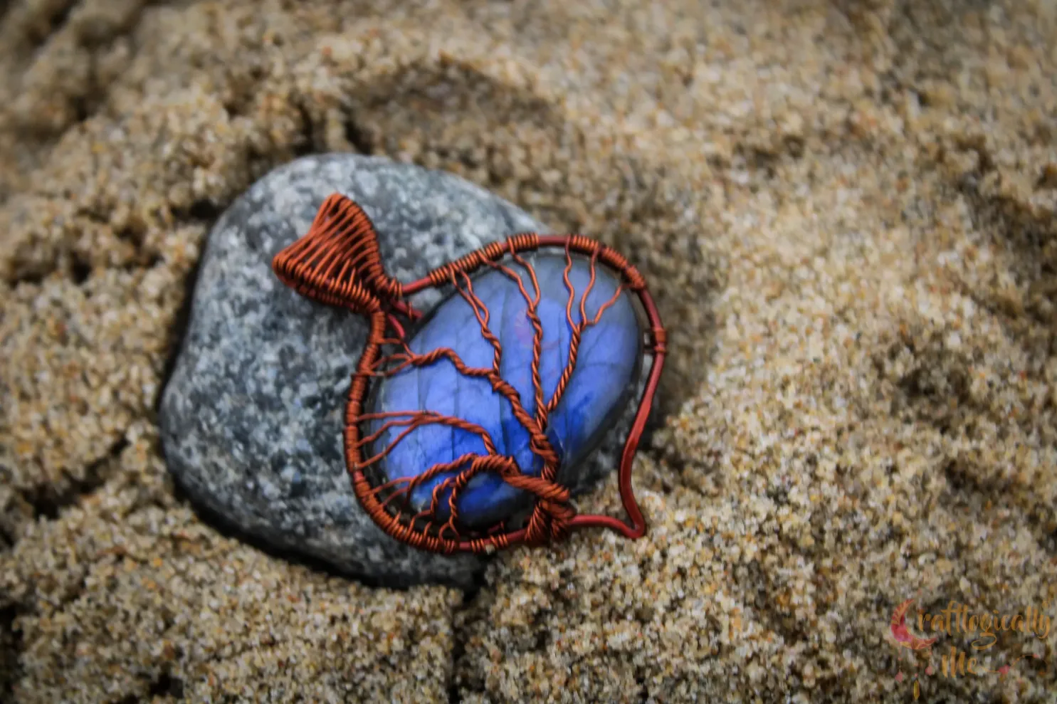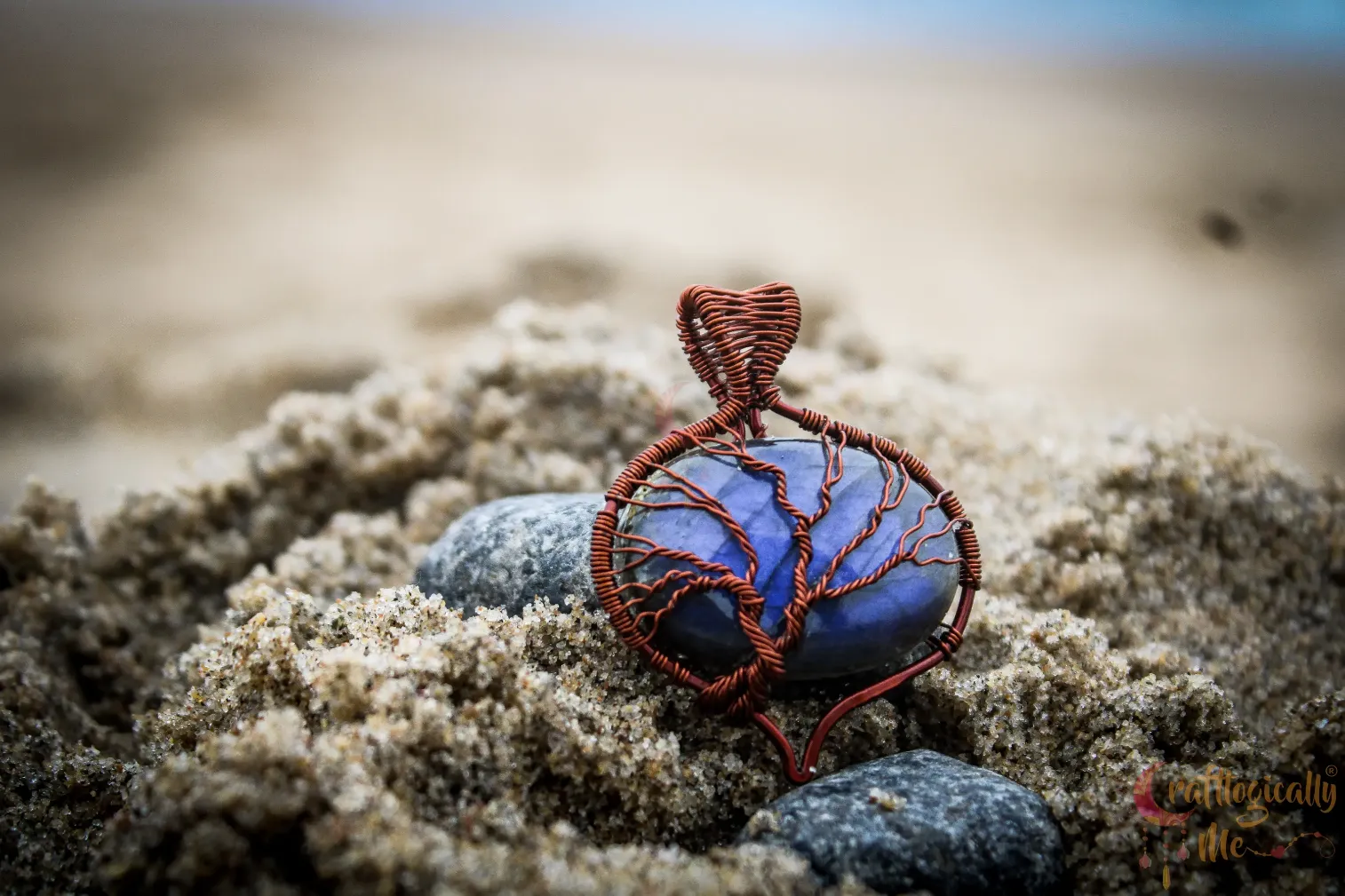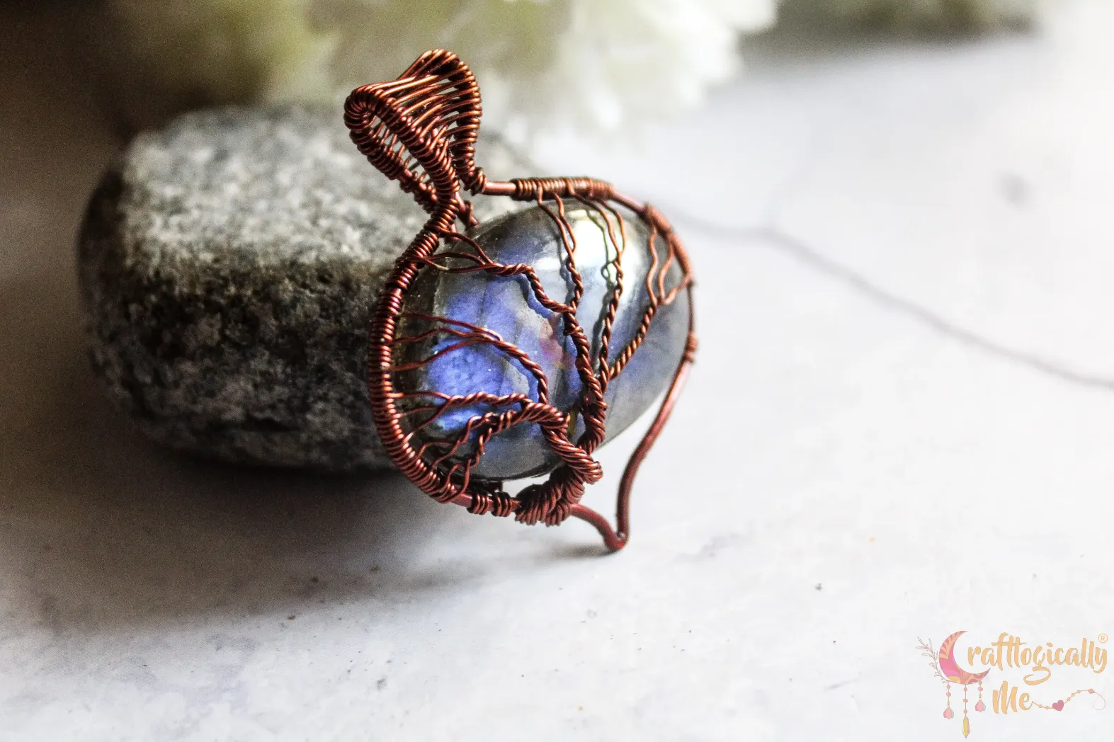 Blue Labradorite oval-drop tree of life pendant