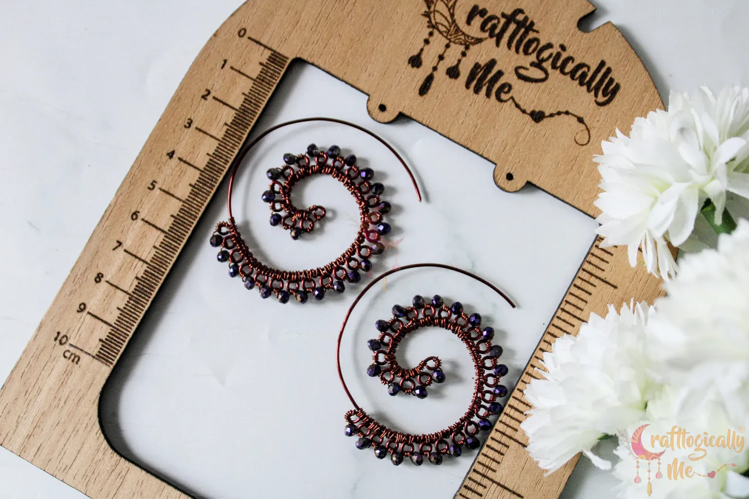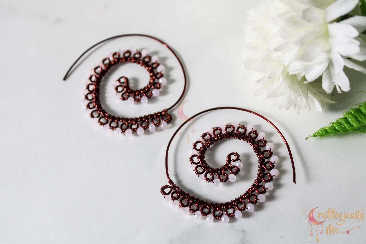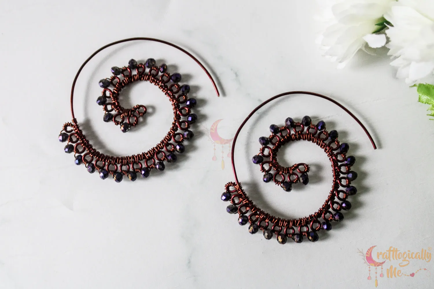 Long Swirly crystal bead earrings