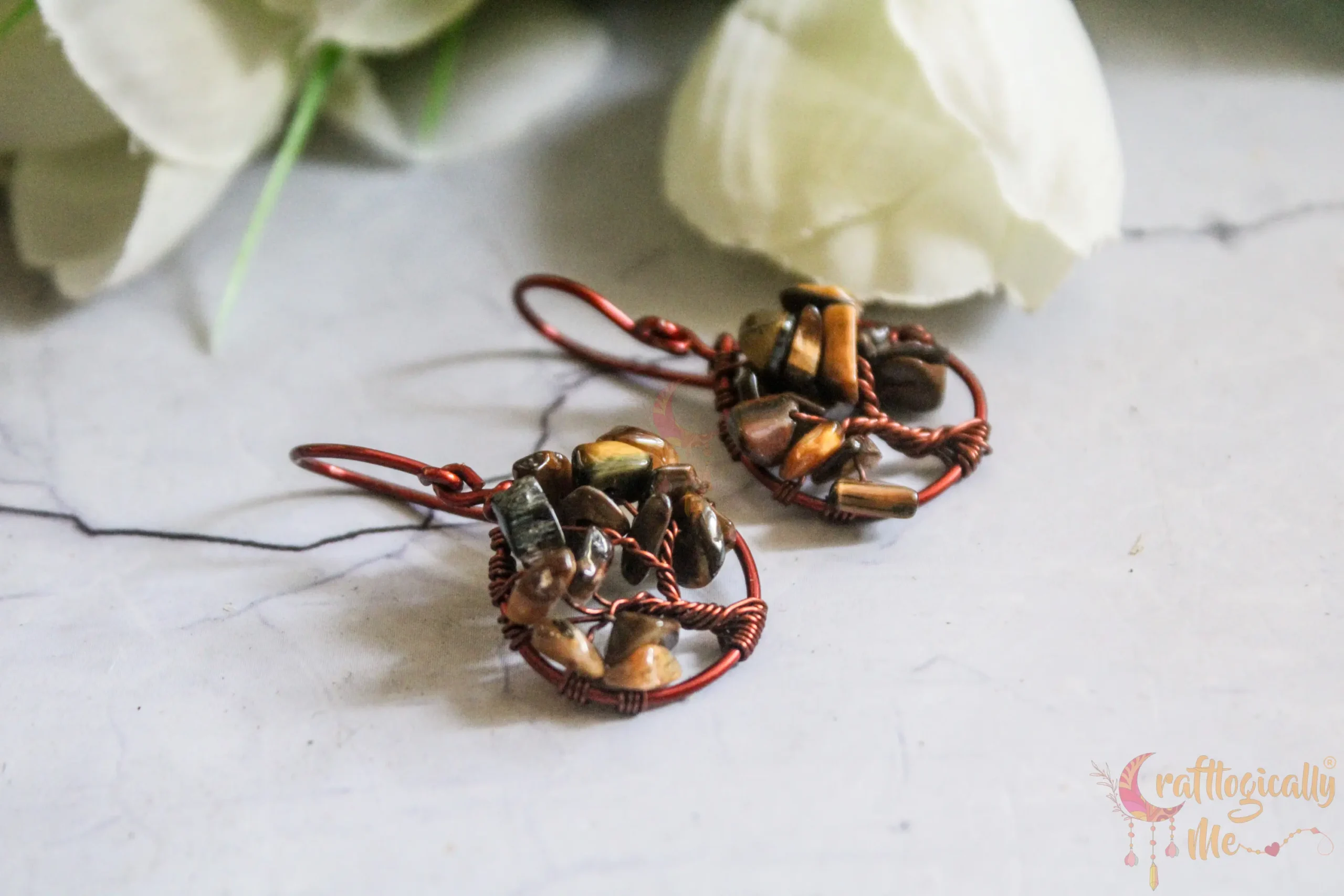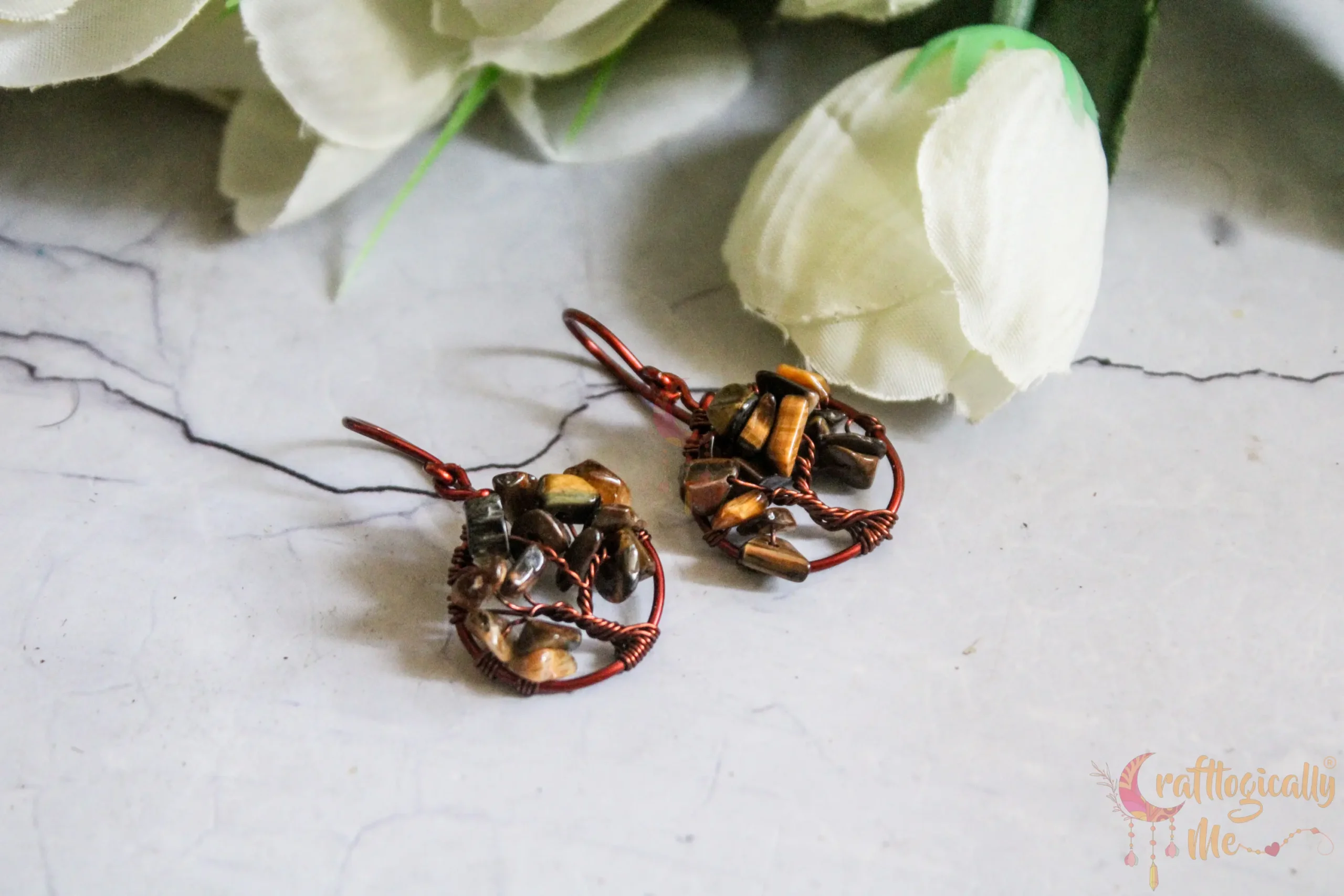 Tiger's eye Tree of life earrings